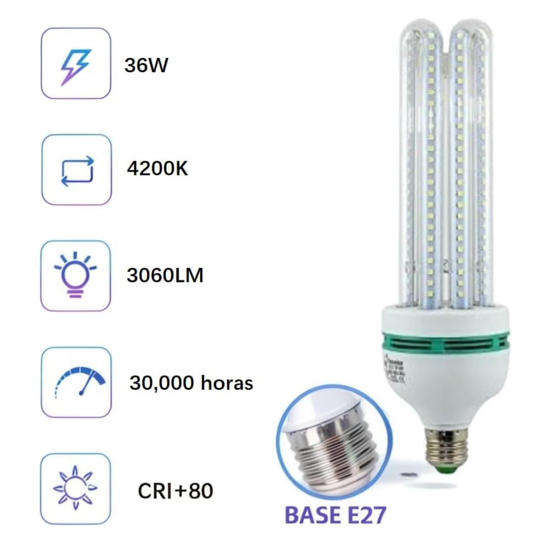Lâmpada LED Econômica 4U 24W 6000K Tensão de Alimentação: 80-265V – 50/60Hz Cor Branco Fria 6000K Base/Soquete E27 Equivale a lâmpada Fluor de 60W Vida média: 25000h Fluxo Luminoso 2160LM Abertura: 360º Não Dimerizável Kit com 10 lampadas 24W Modelo: ST-2020-24-BF