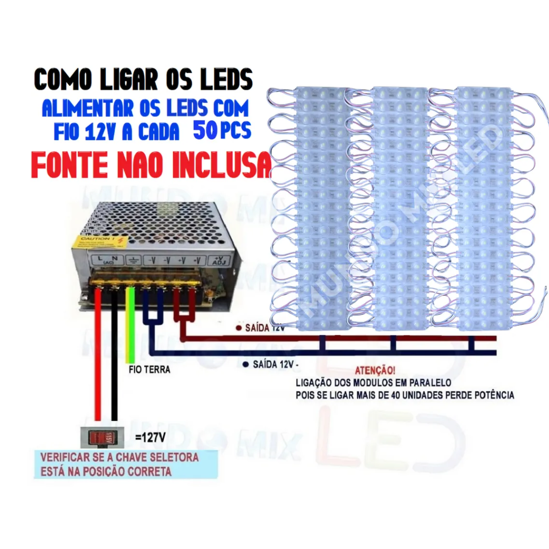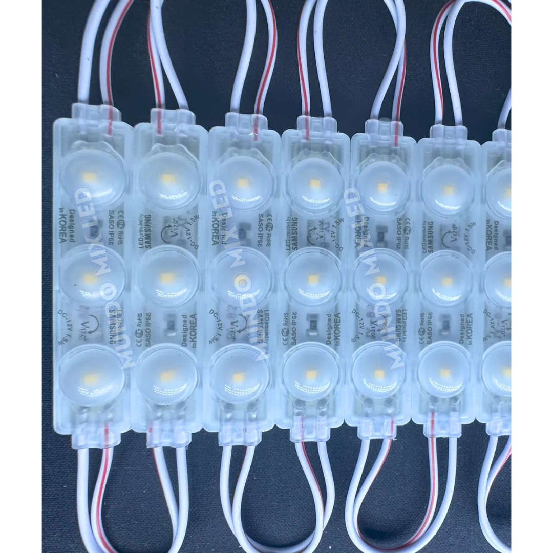 Fabricado com LEDs SMD 3528 Coreanos, reconhecidos pelo excelente padrão de brilho, estabilidade luminosa e longa vida útil, este módulo é perfeito para fachadas, letreiros, caixas de luz, vitrines externas e projetos decorativos em geral.