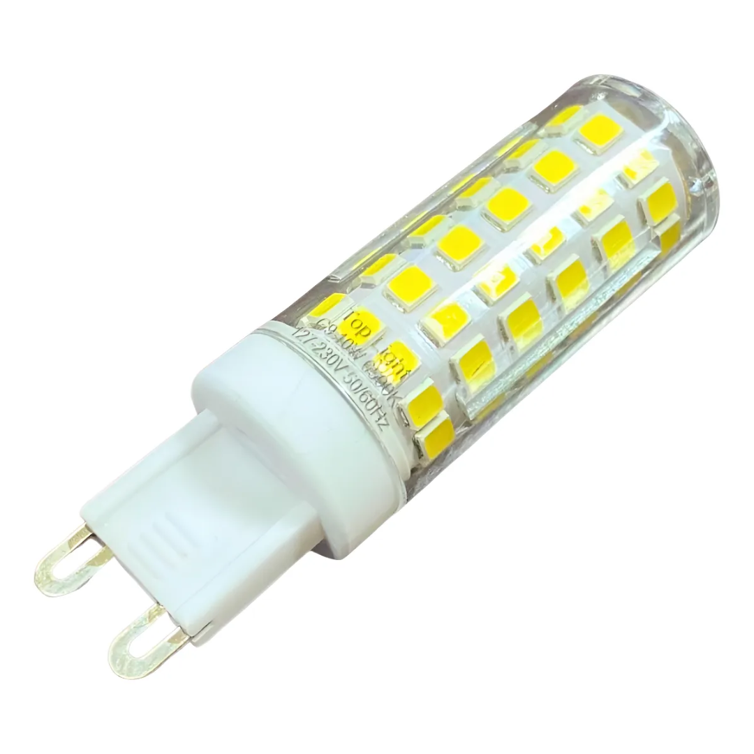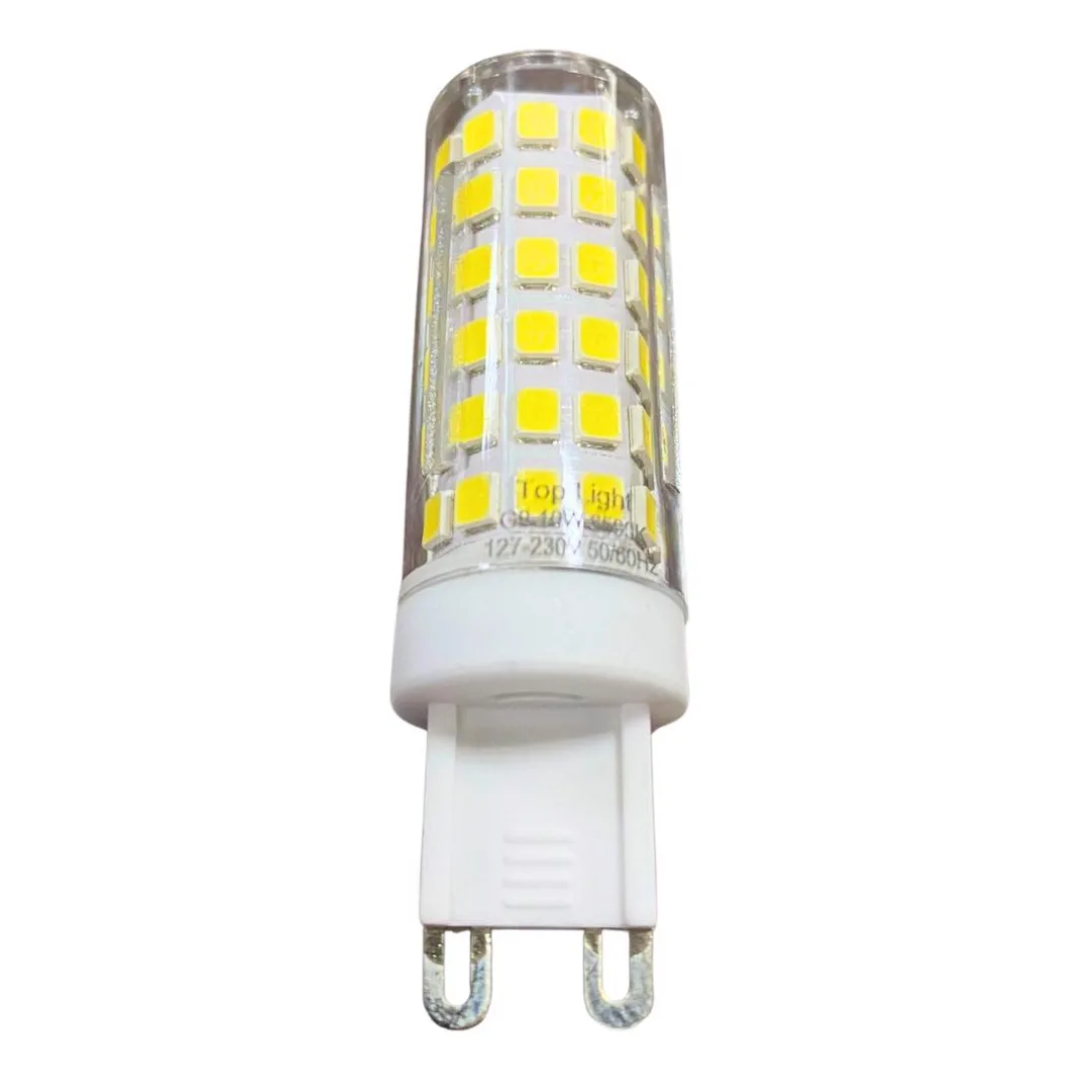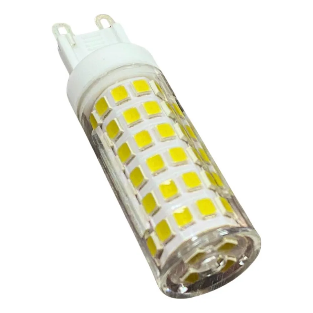 Características técnicas: • Potência: 5w • Base (bocal): G9 • Tensão: 127/220V • Temperatura: 6.500K (Luz Frio) • Ângulo de Abertura: 360° • IRC: >80 • Frequência Nominal: 50/60 Hz • Fluxo Luminoso: 350/540 lm • Fator de potência: >0.6 • Vida útil Nominal (L70): 20.000H