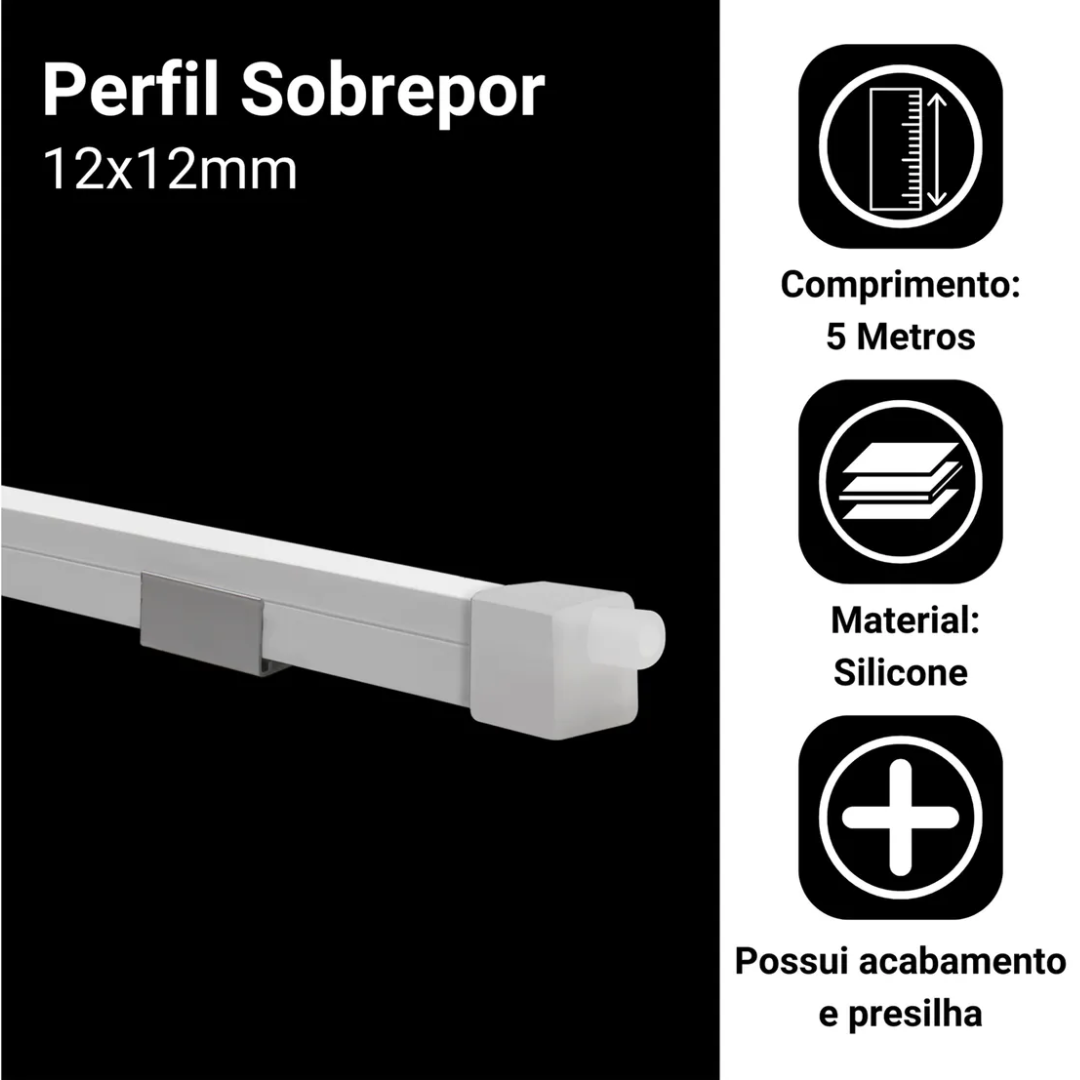 Características • Comprimento: 5 metro • Largura: 12mm • Profundidade: 12mm • Cor: Branco